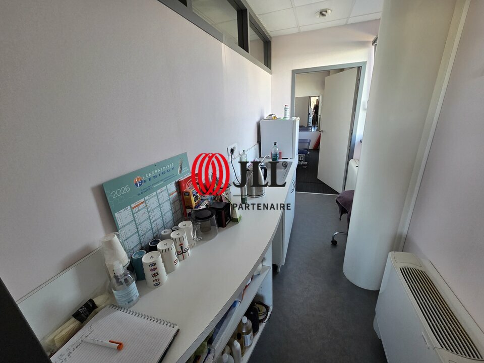 Au 1er étage de l'immeuble, vous disposerez d'un plateau de bureaux très lumineux, d'une surface de 52 m² comprenant un accueil, deux bureaux, une kitchenette, sanitaire.